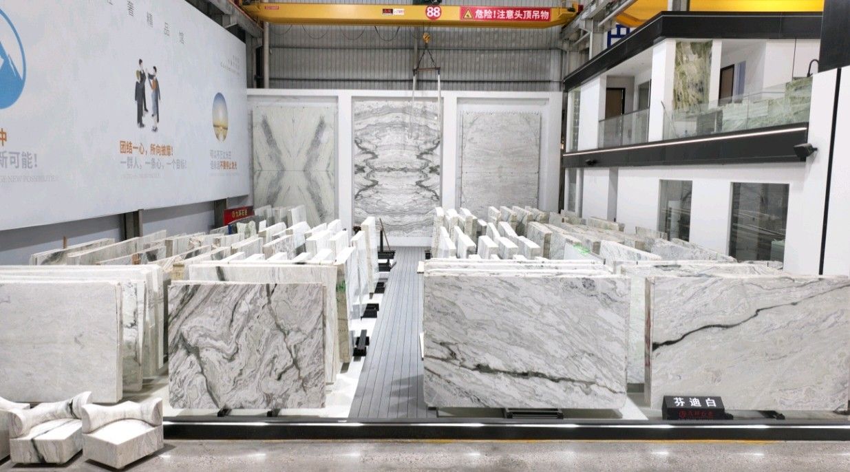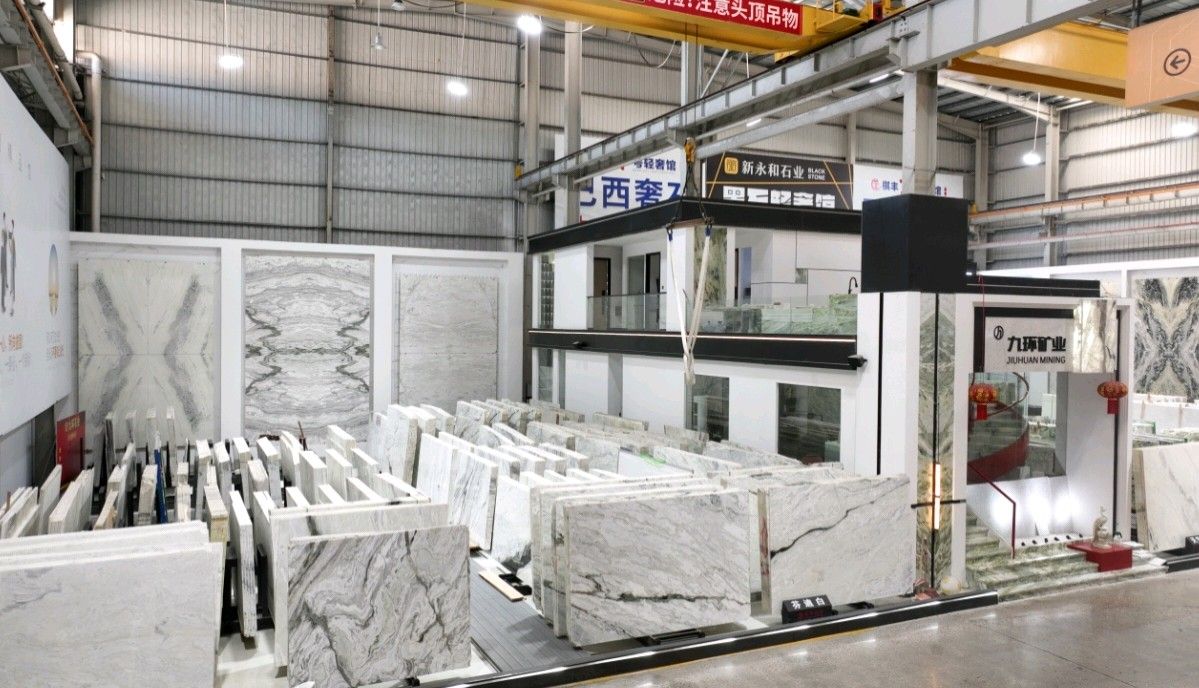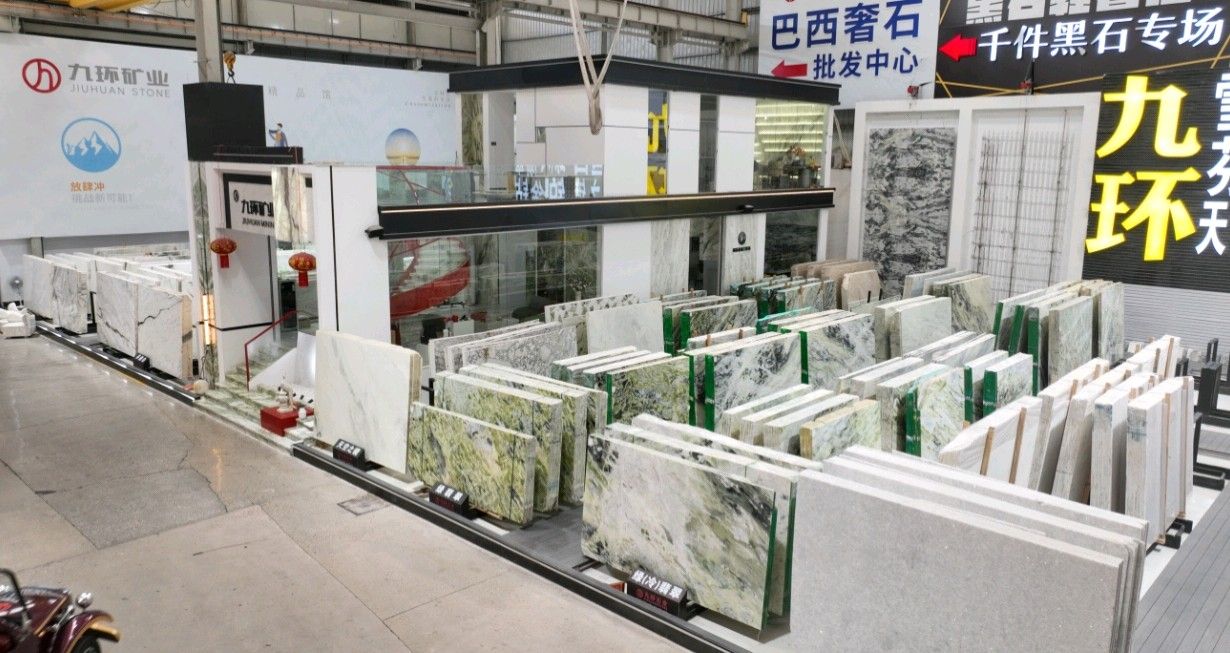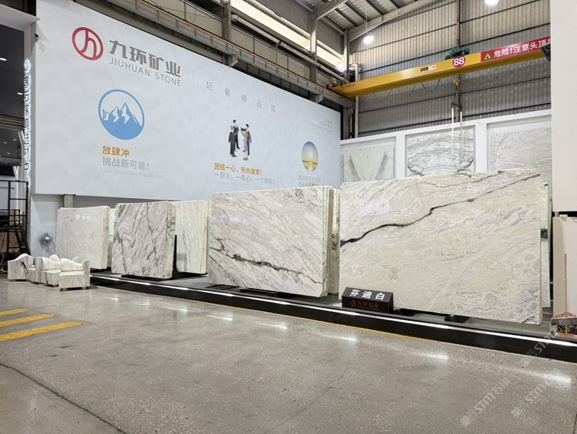公司創(chuàng)建初期駐點(diǎn)于東升大板市場(chǎng),隨著市場(chǎng)需求,不斷進(jìn)行戰(zhàn)略布局,2016年駐點(diǎn)高時(shí)大板市場(chǎng),2017年駐點(diǎn)藝興大板市場(chǎng),同時(shí)期增加澳磊門(mén)店,2018年,九環(huán)增加遠(yuǎn)達(dá)專(zhuān)場(chǎng),擁有數(shù)百個(gè)架子位,憑借優(yōu)質(zhì)服務(wù)深受客戶(hù)認(rèn)可與信賴(lài)。2019年,九環(huán)于順盛增加加工點(diǎn),主要生產(chǎn)“水晶木紋”,年產(chǎn)量達(dá)15萬(wàn)平方米。該年底順勢(shì)而上,增加均利廠、新寰宇廠及振南廠三個(gè)石材加工廠,并不斷拓寬市場(chǎng)品類(lèi),由原先單一的“水晶木紋”,又增拓“印度藍(lán)金沙”與“土耳其星月白”兩個(gè)大理石品種,年產(chǎn)量接近30萬(wàn)平方米,公司經(jīng)營(yíng)得到進(jìn)一步優(yōu)化。2020年九環(huán)石業(yè)進(jìn)軍南翼點(diǎn),新增“卡索灰”及“古堡藍(lán)”兩個(gè)大理石品種,擁有自己的大型礦山開(kāi)采權(quán),自主開(kāi)采銷(xiāo)售,產(chǎn)品種類(lèi)大幅度增加,業(yè)務(wù)領(lǐng)域進(jìn)一步拓展。2021年至今,九環(huán)石業(yè)新增澳盛點(diǎn),新增品種“卡地亞灰”包礦。至此,九環(huán)石業(yè)在“世界石都”水頭戰(zhàn)略版圖囊括了澳盛、新寰宇、東升、遠(yuǎn)達(dá)等駐點(diǎn),具備良好的區(qū)位優(yōu)勢(shì),發(fā)揮著重要的協(xié)同效應(yīng)。\