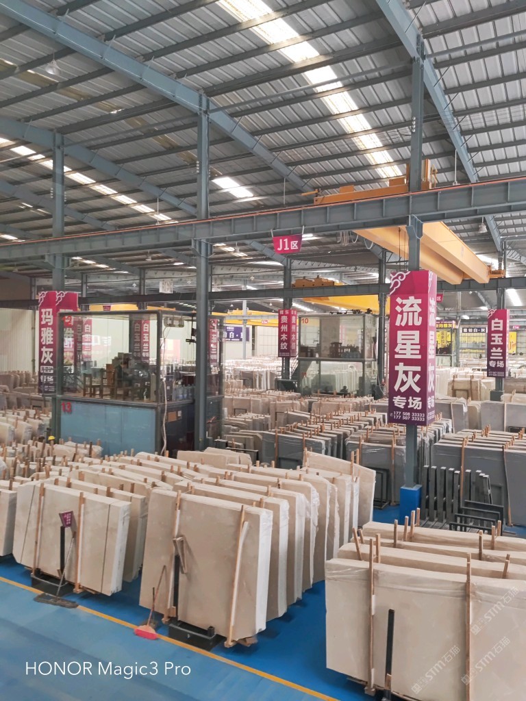 專營白玉蘭、閃電,月均到貨量3000噸,大板庫存量白玉蘭10萬平方,閃電3萬平方
