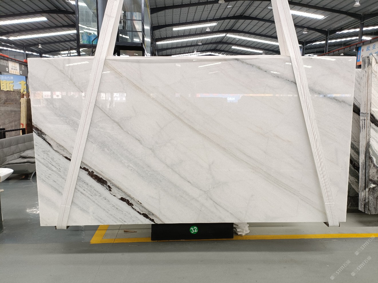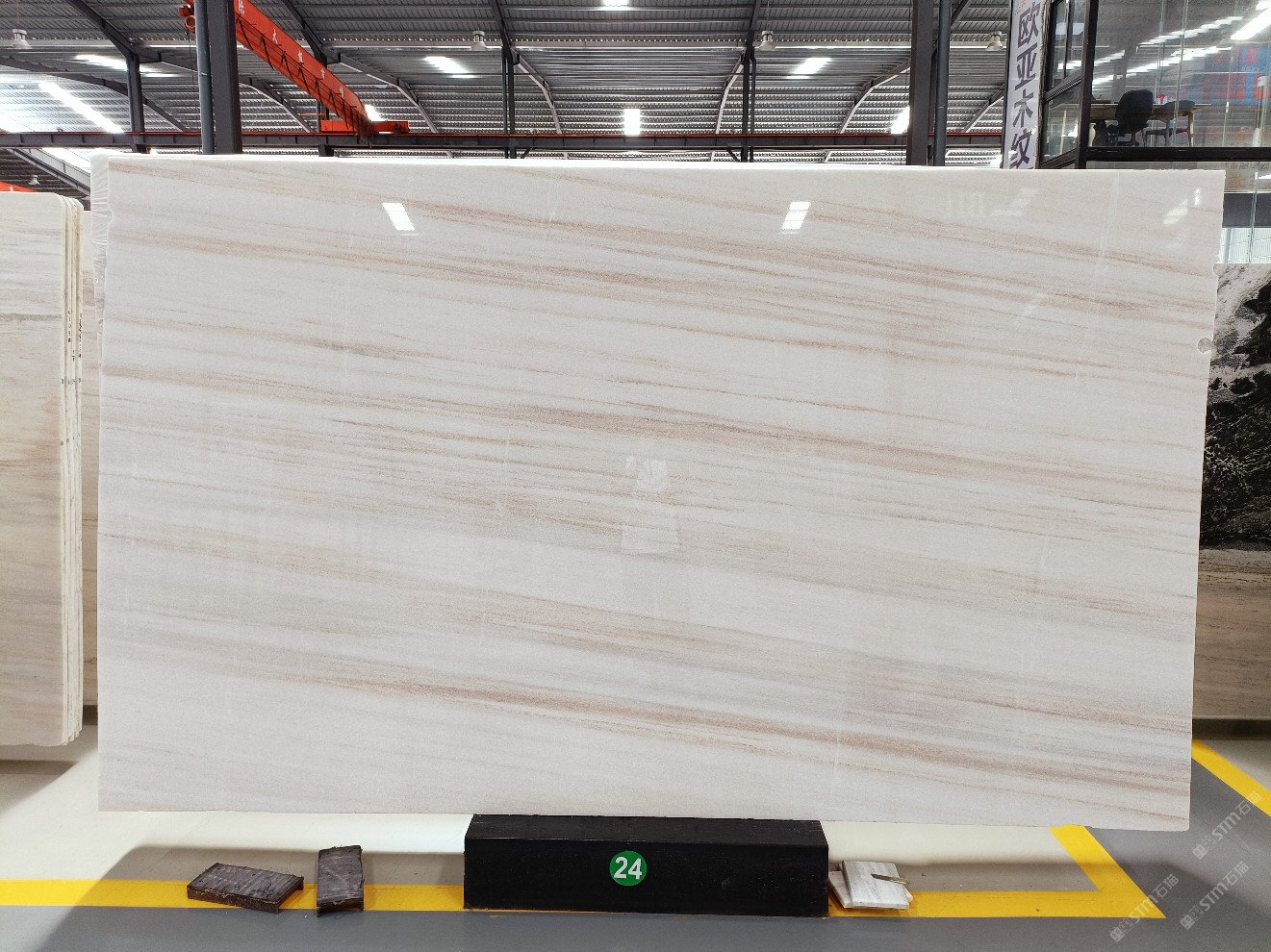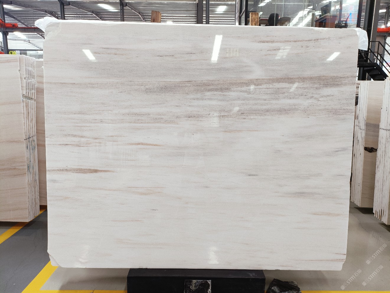 云浮站石材公司開(kāi)發(fā)的歐亞白獨(dú)立礦山,專(zhuān)屬道路,礦口面積約 725 畝,證件齊全。今年礦口開(kāi)采出直紋,亂紋優(yōu)質(zhì)大板材料,礦山采用單面墻平臺(tái)開(kāi)采方式,10臺(tái)繩鋸、5臺(tái)鏟車(chē)、5臺(tái)勾機(jī)、一臺(tái) 30 噸叉車(chē),共有職工40人,已有兩個(gè)開(kāi)采平臺(tái)。礦山已開(kāi)采多年,道路、設(shè)施都已成熟,現(xiàn)產(chǎn)能穩(wěn)定增長(zhǎng)。品質(zhì)非常穩(wěn)定,一石兩面分別可以產(chǎn)出直紋和亂紋兩種紋路,材質(zhì)為細(xì)膩的玉質(zhì)品體。