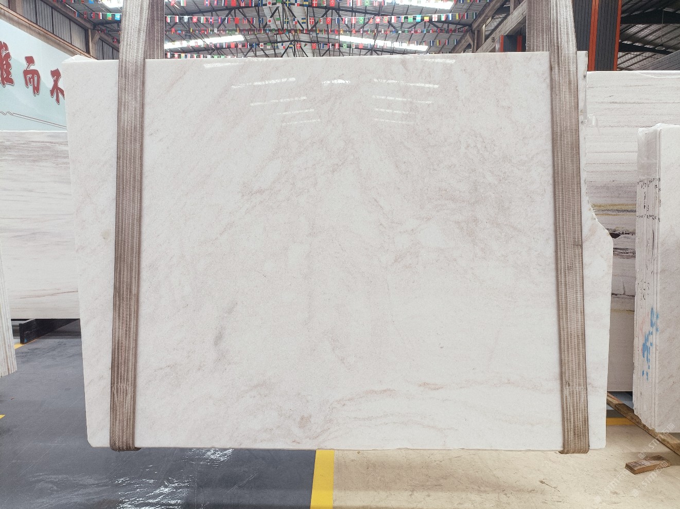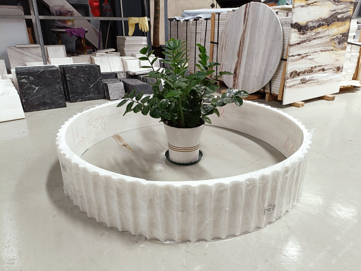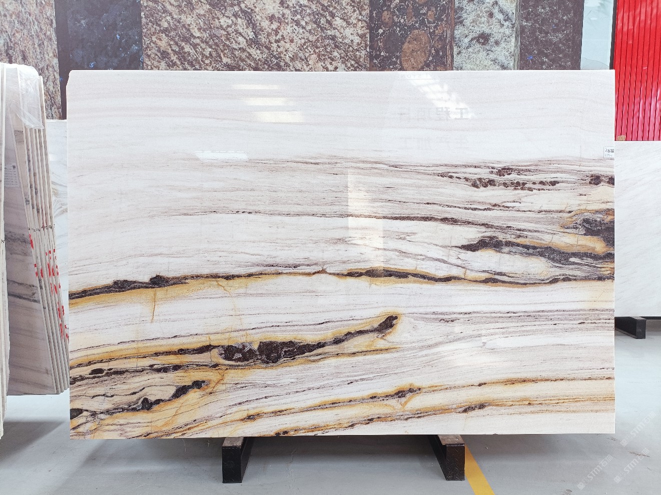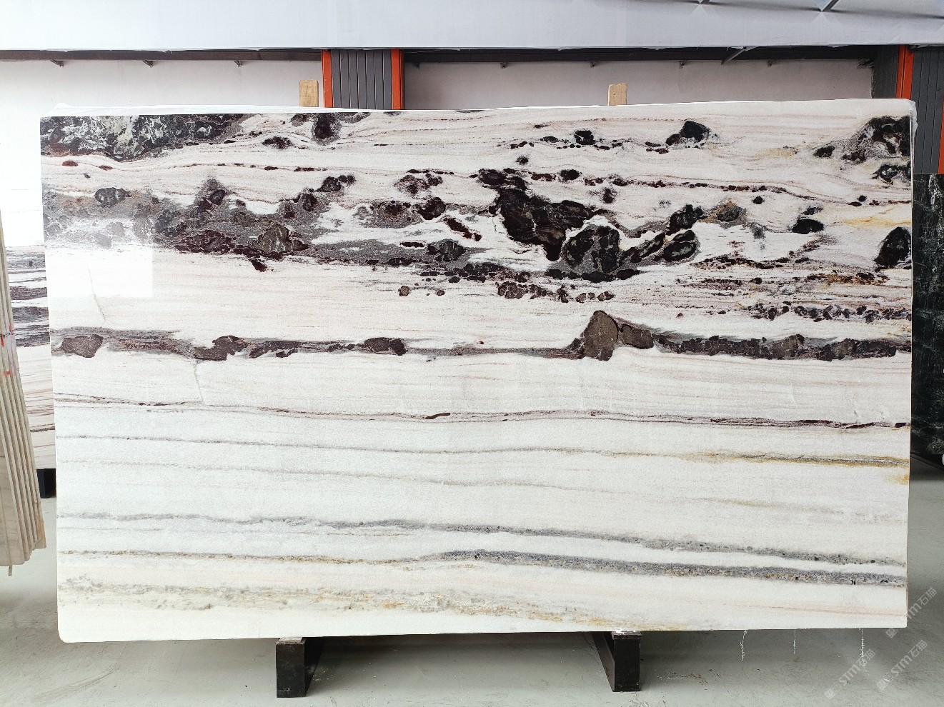 云浮站石材公司開(kāi)發(fā)的歐亞白獨(dú)立礦山,專(zhuān)屬道路,礦口面積約 725 畝,證件齊全。今年礦口開(kāi)采出直紋,亂紋優(yōu)質(zhì)大板材料,礦山采用單面墻平臺(tái)開(kāi)采方式,10臺(tái)繩鋸、5臺(tái)鏟車(chē)、5臺(tái)勾機(jī)、一臺(tái) 30 噸叉車(chē),共有職工40人,已有兩個(gè)開(kāi)采平臺(tái)。礦山已開(kāi)采多年,道路、設(shè)施都已成熟,現(xiàn)產(chǎn)能穩(wěn)定增長(zhǎng)。品質(zhì)非常穩(wěn)定,一石兩面分別可以產(chǎn)出直紋和亂紋兩種紋路,材質(zhì)為細(xì)膩的玉質(zhì)品體。