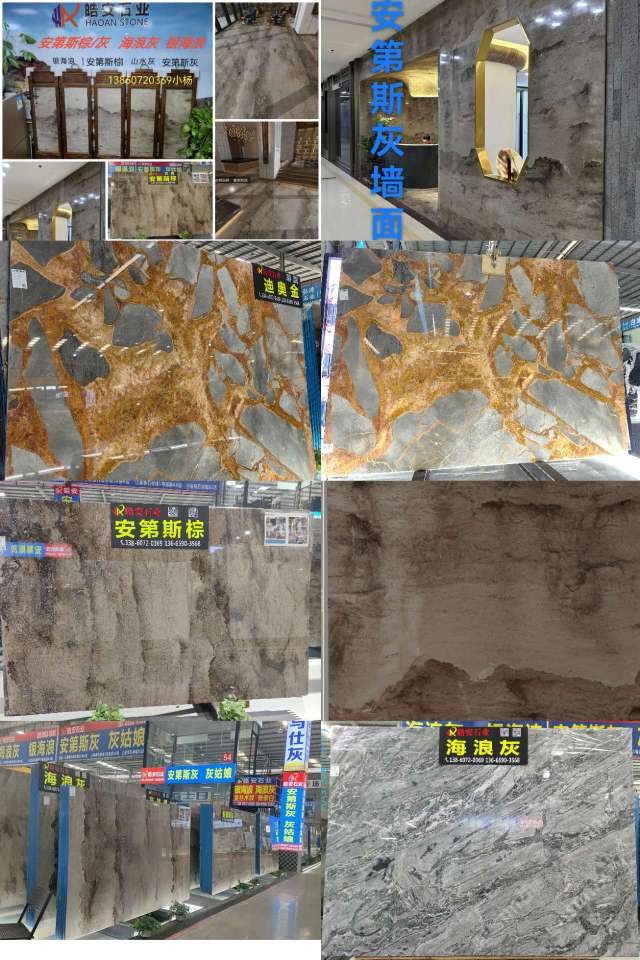 皓安石業(yè):主營(yíng)(一):→安第斯棕~山水灰~水墨棕,其紋路是安第斯山脈連綿不斷,雄偉壯觀,大自然的鬼斧神工之水墨畫般層次分明,若隱若現(xiàn)似山似水又似景的灰色天然大理石…主營(yíng)(2):海浪灰→銀海浪,波濤灰~其紋理變化莫測(cè),猶如海納百川,呼嘯而來,卷起千重浪,氣勢(shì)恢宏!自然寫意,不拘章法,大氣而靈動(dòng)適用于各種高檔場(chǎng)所的異型拼花、電視背景墻、各種吧臺(tái)等…是工裝家裝理想的裝飾材料…