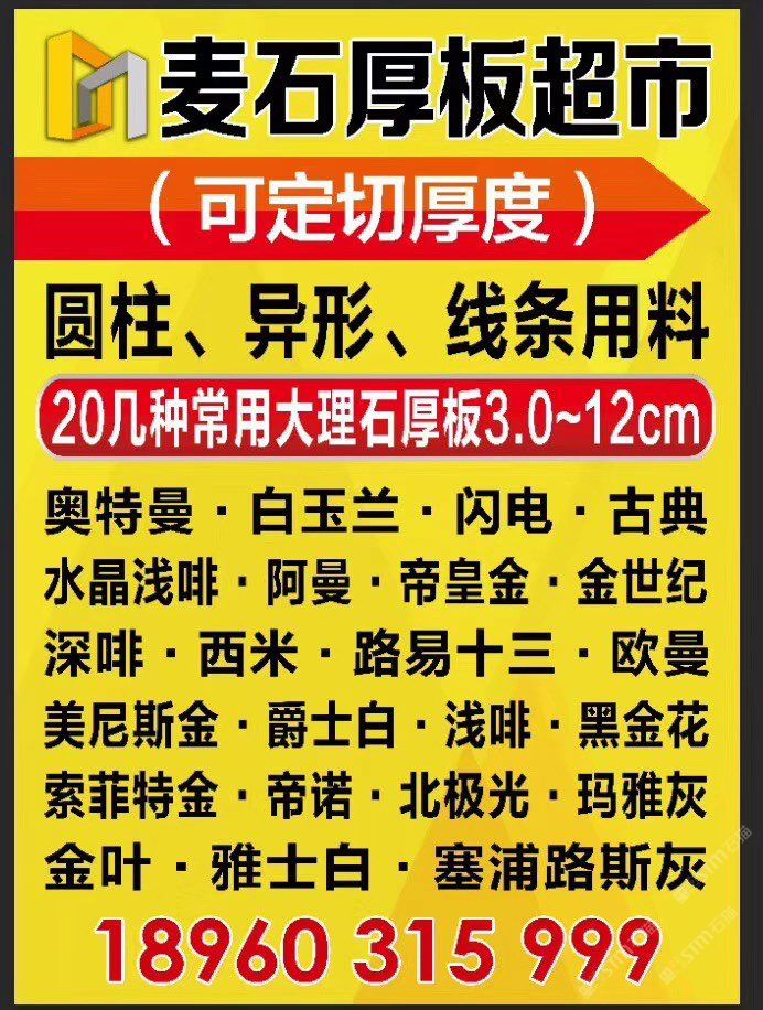 正常板大量庫存:、索菲特金、歐曼米黃、金葉米黃、北極光、塞浦路斯灰、橄欖灰、帝王灰。閩都大理石厚板超市長期30幾種常用現(xiàn)貨供應(yīng)3cm-6cm厚板、正常板