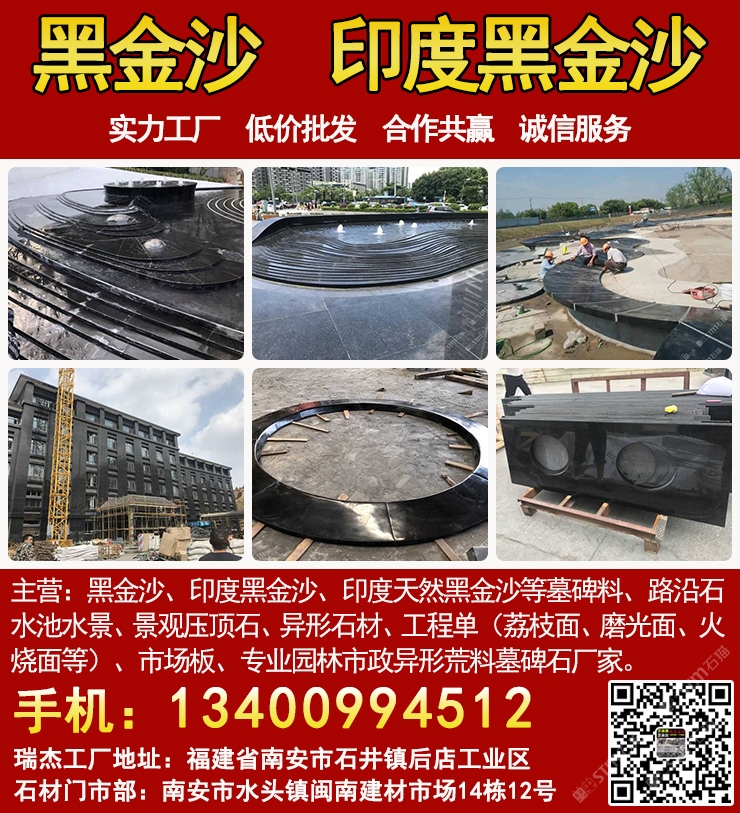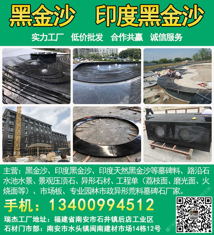 發(fā)布信息: 瑞杰黑金沙林總13400994512專業(yè)印度黑金沙供應(yīng)商,實(shí)力石材工廠主要加工:黑金沙、黑金砂、印度黑金沙、印度天然黑金沙、印度黑色石材、印度黑石、黑金沙石材、黑金沙花崗巖、新礦黑金砂、國產(chǎn)黑金沙、新黑金沙石材等墓碑料、路沿石、水池水景、景觀壓頂石、異形石材、工程單(荔枝面、磨光面、火燒面等)、市場板、專業(yè)園林市政異形荒料墓碑石廠家,實(shí)力工廠、低價批發(fā)、合作共贏、誠信服務(wù). 工廠地址:福建省南安市石井鎮(zhèn)后店工業(yè)區(qū),門市部:南安市水頭鎮(zhèn)閩南建材市場