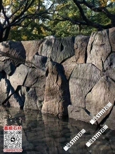 芝麻黑自然面背景墻流水石水景石材流水幕墻石皮背景墻