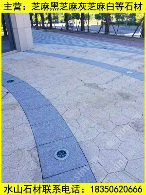 芝麻灰小方塊馬蹄石彈石G655石材 地鋪石工程案例