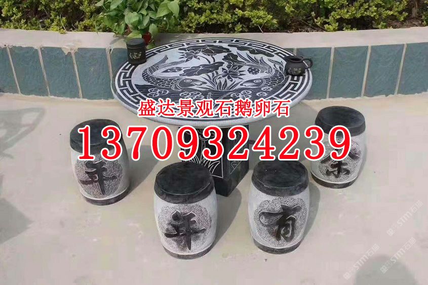 商圈 > 石桌椅 > 芝麻黑花崗巖雕刻石桌石椅石凳g654石材象棋桌子