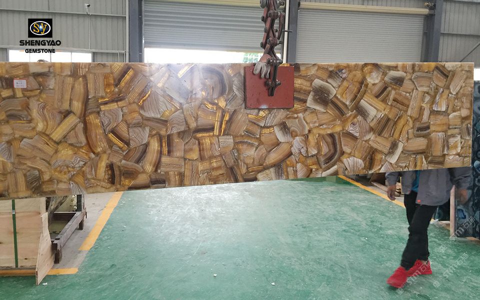 發(fā)布信息: 半寶石板材——黃水晶大板,常規(guī)尺寸1220*2440mm,支持定制尺寸,異型等工程需求。高端墻面裝飾,臺(tái)面,吧臺(tái)。廣泛應(yīng)用于別墅、酒店、會(huì)所、酒吧、咖啡廳、專賣店、浴室噴泉、廚房、桌面等應(yīng)用裝飾。 升耀寶石專業(yè)生產(chǎn)虎眼石,瑪瑙,水晶,木化石,景泰藍(lán),青金石,紫瑩石,孔雀石,多紅碧玉,紅綠寶,拉長(zhǎng)石,銀線石,鐵虎石,格蘭云天,草化石,龜背石等歡迎聯(lián)系訂購