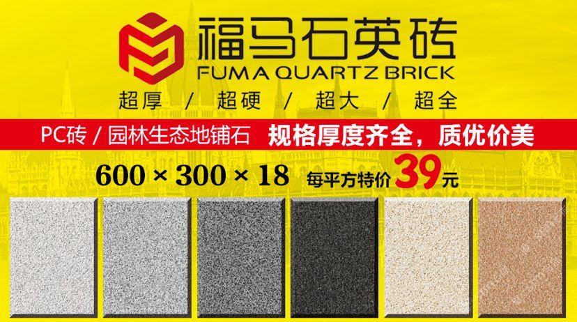 發(fā)布信息: 福馬石英磚? 品質(zhì)承諾:無(wú)色差、無(wú)裂痕、不褪色、不變形、不吸水、不膨脹。 適合用于室內(nèi)外,景觀(guān),庭院、圍墻,地鋪,干掛外墻。歡迎新老客戶(hù)來(lái)選購(gòu),品種多,規(guī)格全