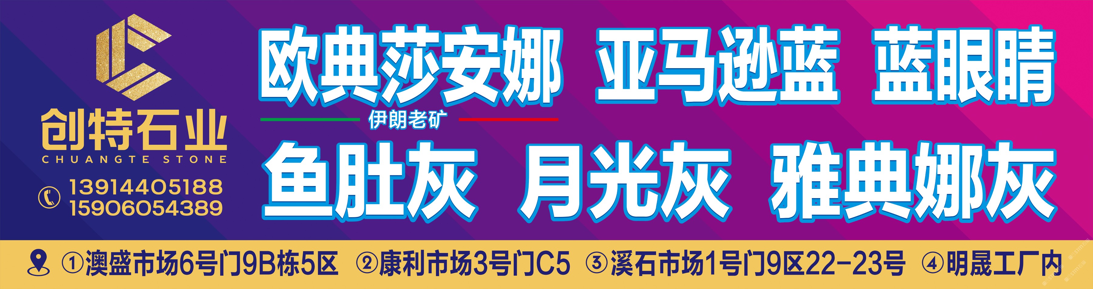 發(fā)布信息: 你好! 創(chuàng)特石業(yè) 李志森13626060635 主營:魚肚灰 意大利云灰月光灰 洲際灰 雅典娜灰 歐典莎安娜 亞馬遜藍(lán) 藍(lán)眼睛