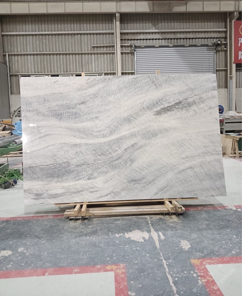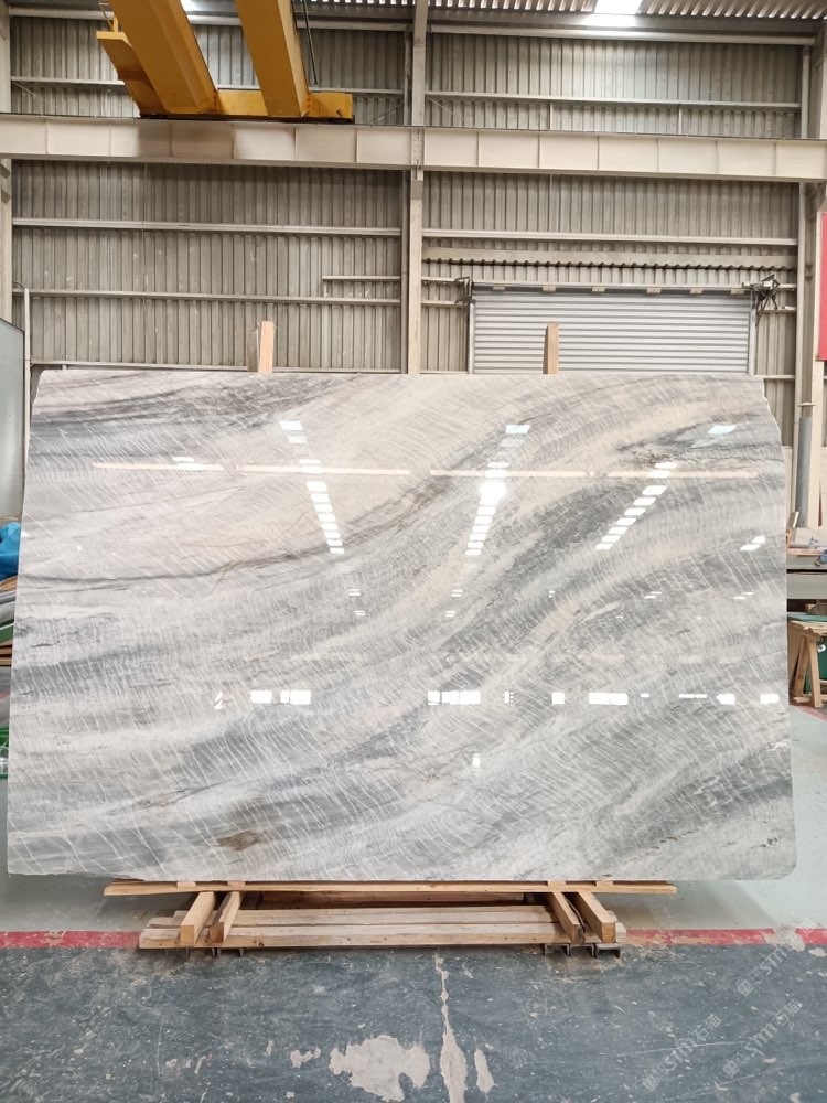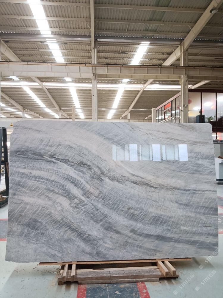 維多利亞白,波浪紋灰白石,灰白底帶些許藍(lán)色紋理