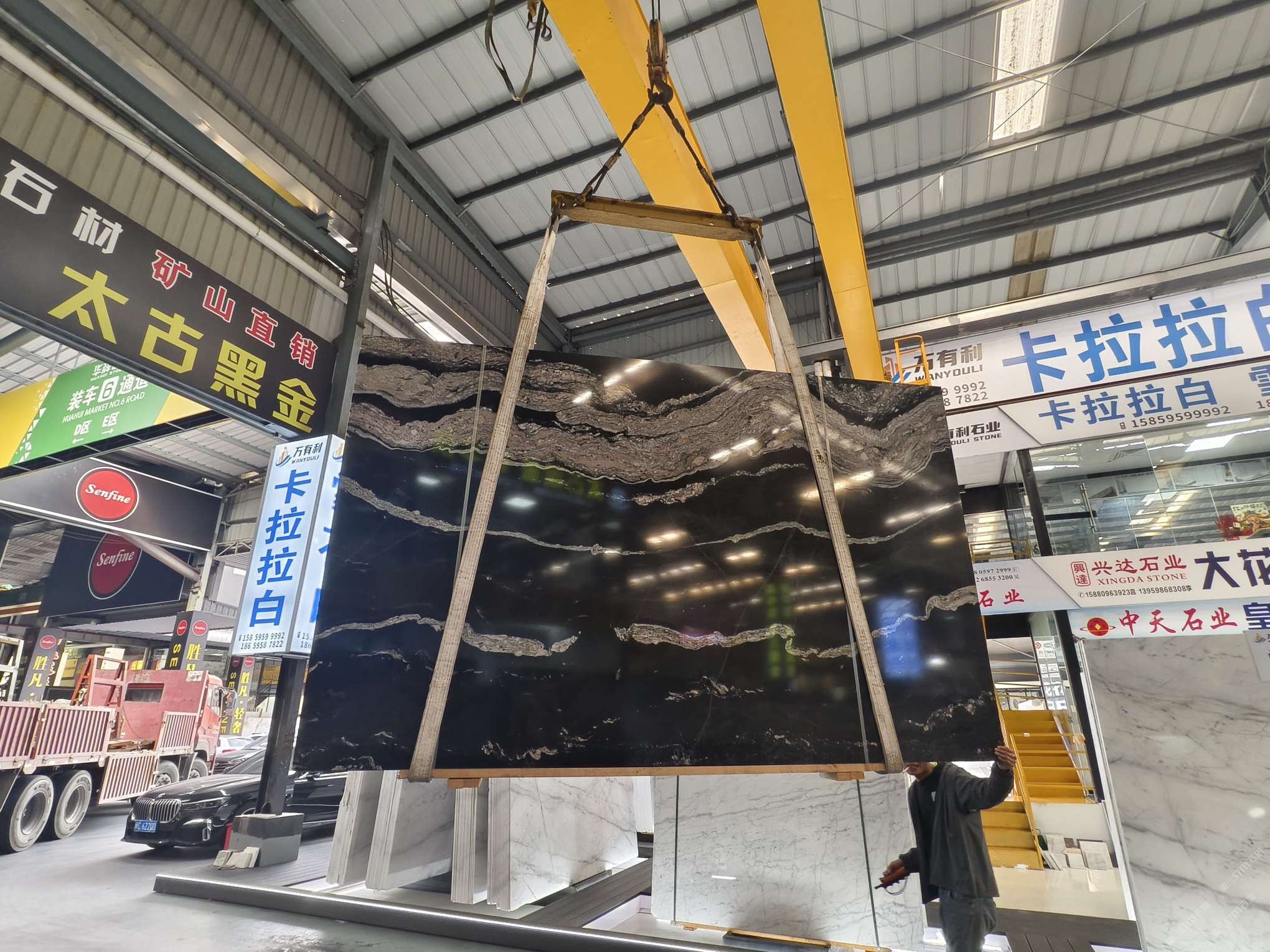 福建泉州高晟石材有限公司 聯(lián)系人:華輝店:宇宙黑-櫻花粉-畢加索-太古黑金    158****2788 查看 131****4666 查看 主營范圍: 礦山、荒料、大板批發(fā)、大理石加工、異型加工、石材工藝品、水刀拼花、 企業(yè)地址:福建泉州南安市水頭鎮(zhèn)立信大板市場2號門2通道C5