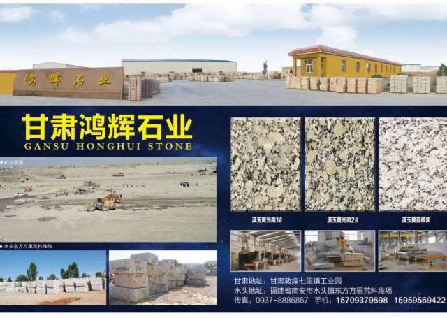 鴻輝礦業(yè) 聯(lián)系人:黃先生    180****0399 查看 159****9422 查看 主營(yíng)范圍: 礦山、花崗巖加工、荒料、大板批發(fā)、 企業(yè)地址:甘肅酒泉敦煌紅柳河