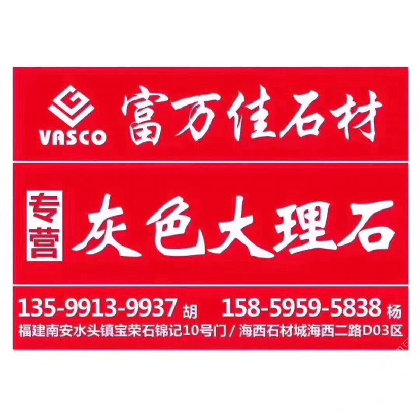 富萬佳石業(yè) 聯(lián)系人:楊    158****5838 查看 158****5838楊 查看 主營范圍: 大板批發(fā)、荒料、大理石加工、礦山、石材雕刻、石材外貿(mào)、石材工藝品、環(huán)境石材、人造石加工、水刀拼花、 企業(yè)地址:福建南安水頭鎮(zhèn)恒美石材城5區(qū)